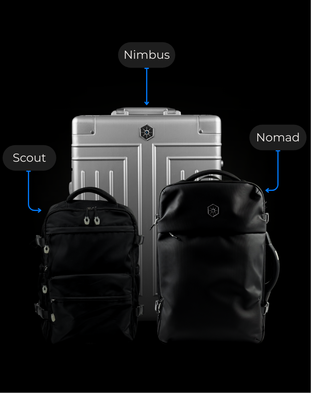 Of course — most accessories like the toiletry kits, packing cubes, and tech organizers are designed to work across Scout, Nomad, and Nimbus setups. You can mix and match to suit your travel style.