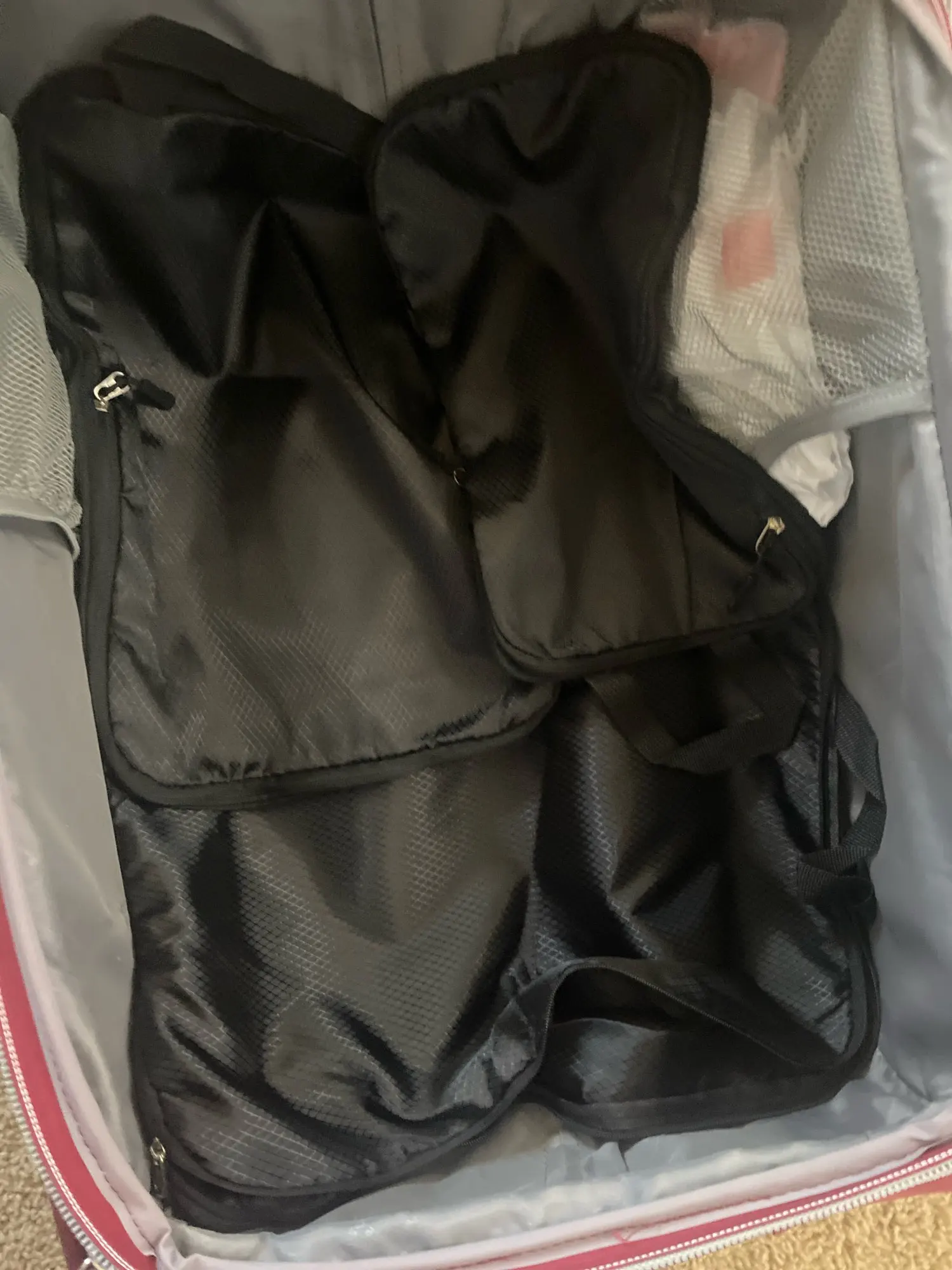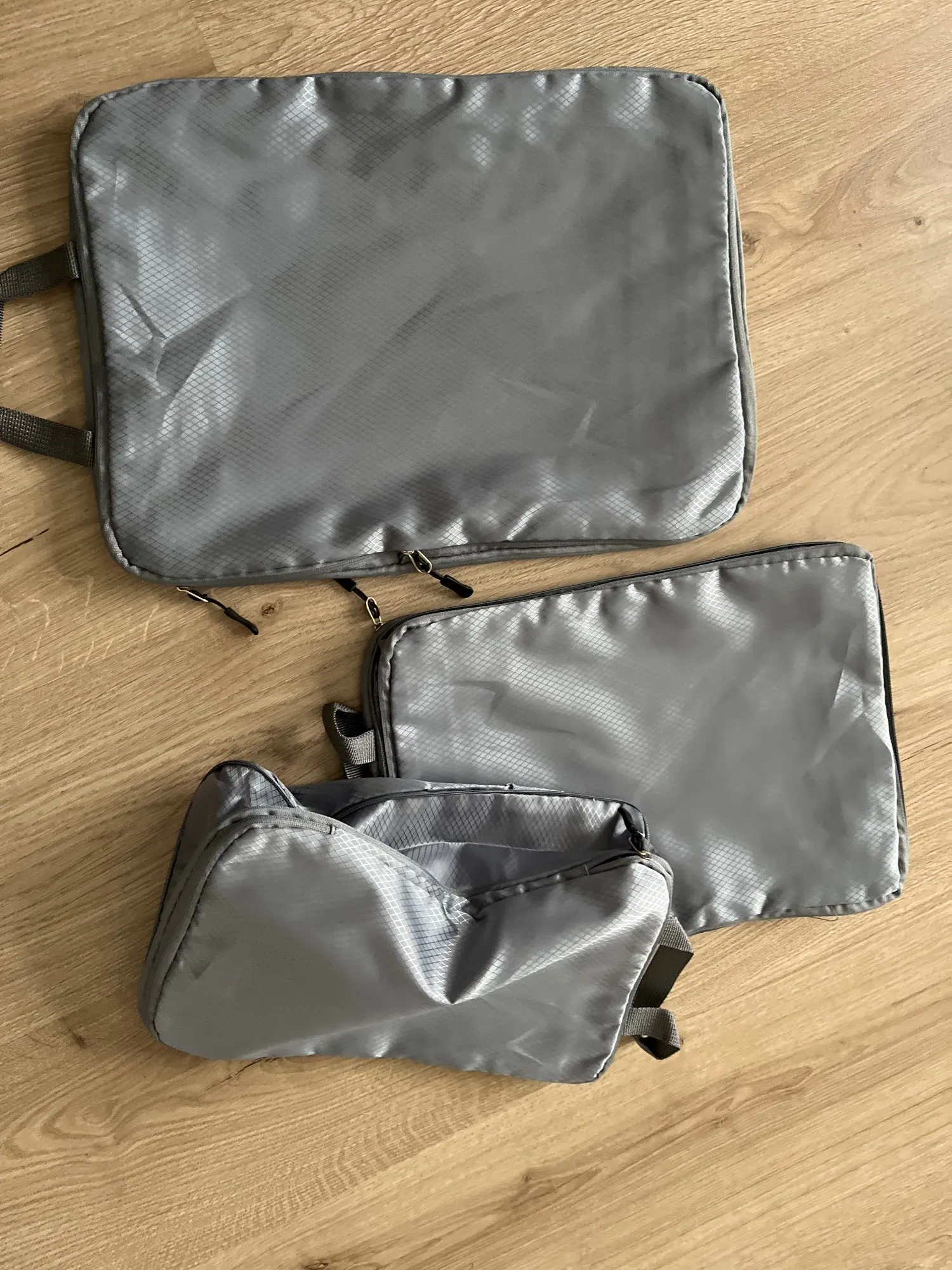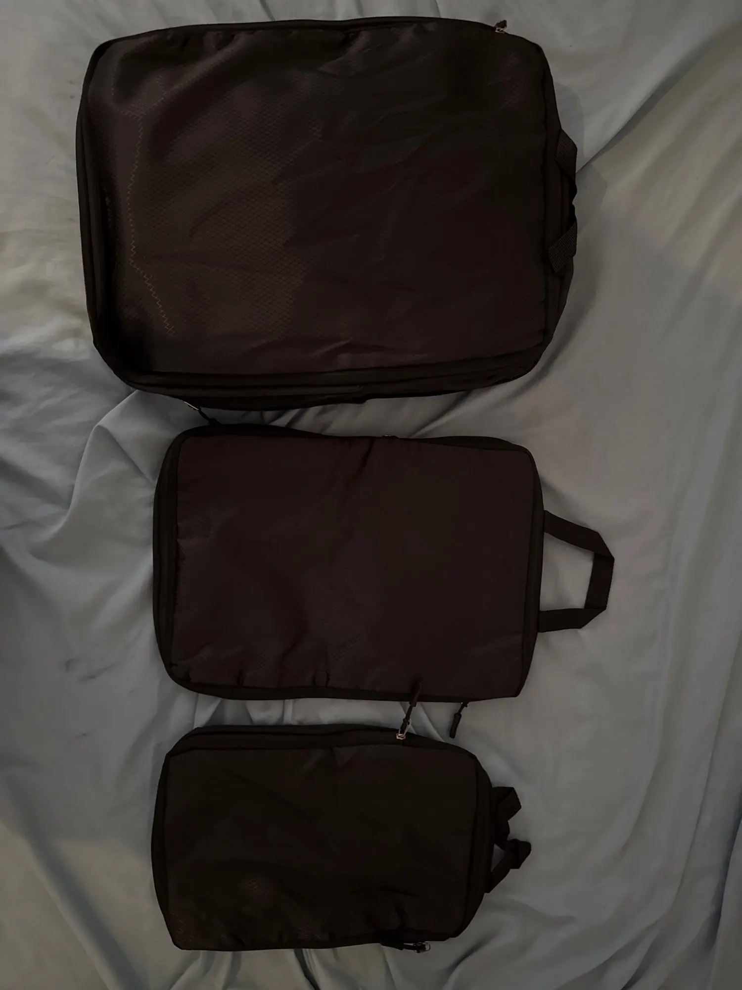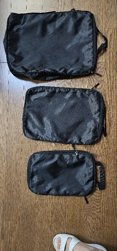 Organize smarter with this modular set of packing cubes—designed for everything from shirts and pants to socks and tech. Each cube features heavy-duty zippers, breathable mesh tops, and soft reinforced handles. The structured build keeps your items compact and wrinkle-free, while the sleek monochrome design complements any travel setup.