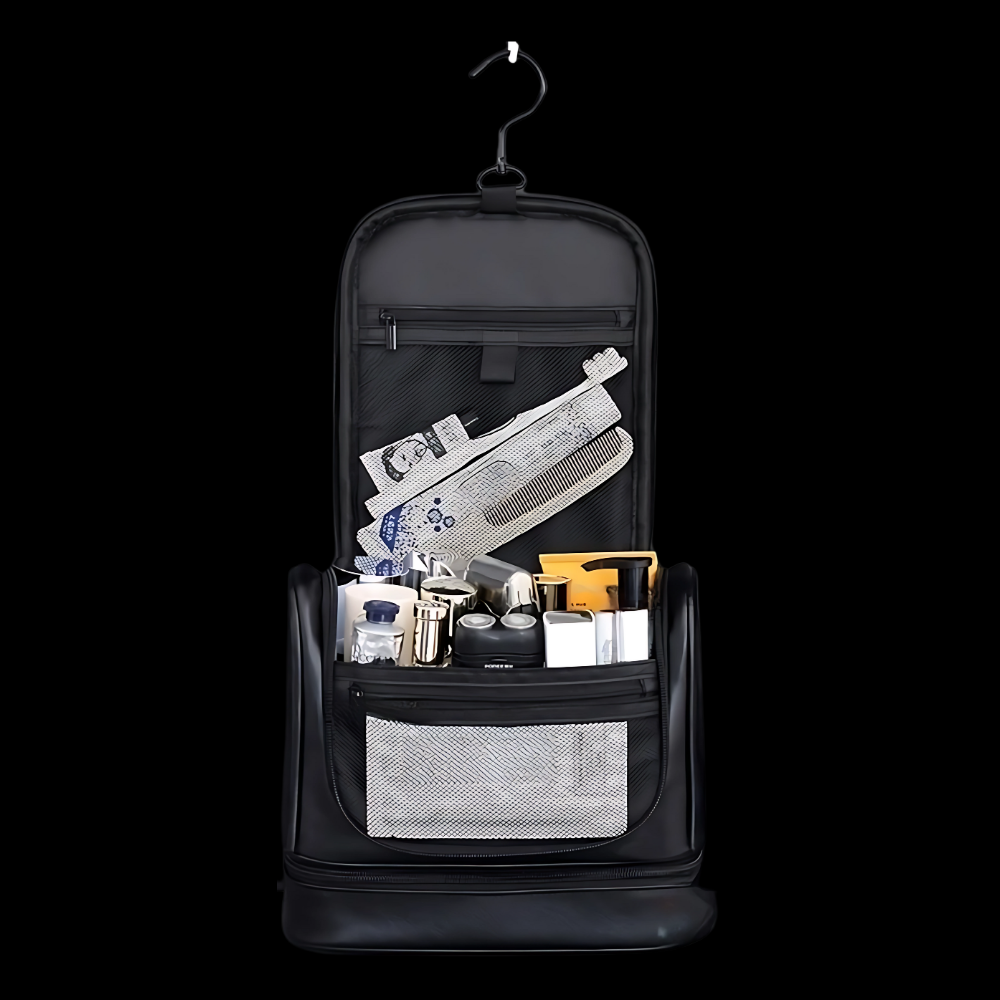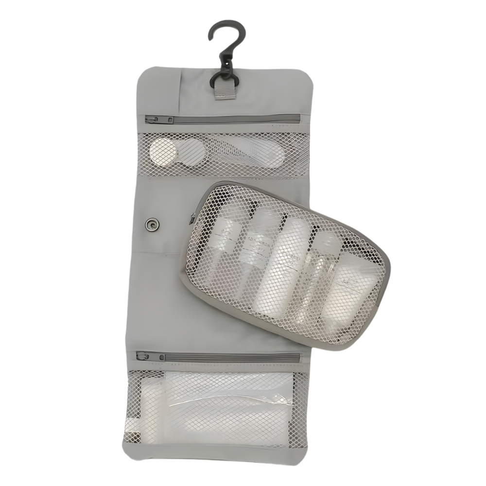 Designed for convenience and carry-on compliance. Multiple compartments keep items neatly stored, and the built-in hook lets you hang it anywhere — from hotel doors to tent poles.